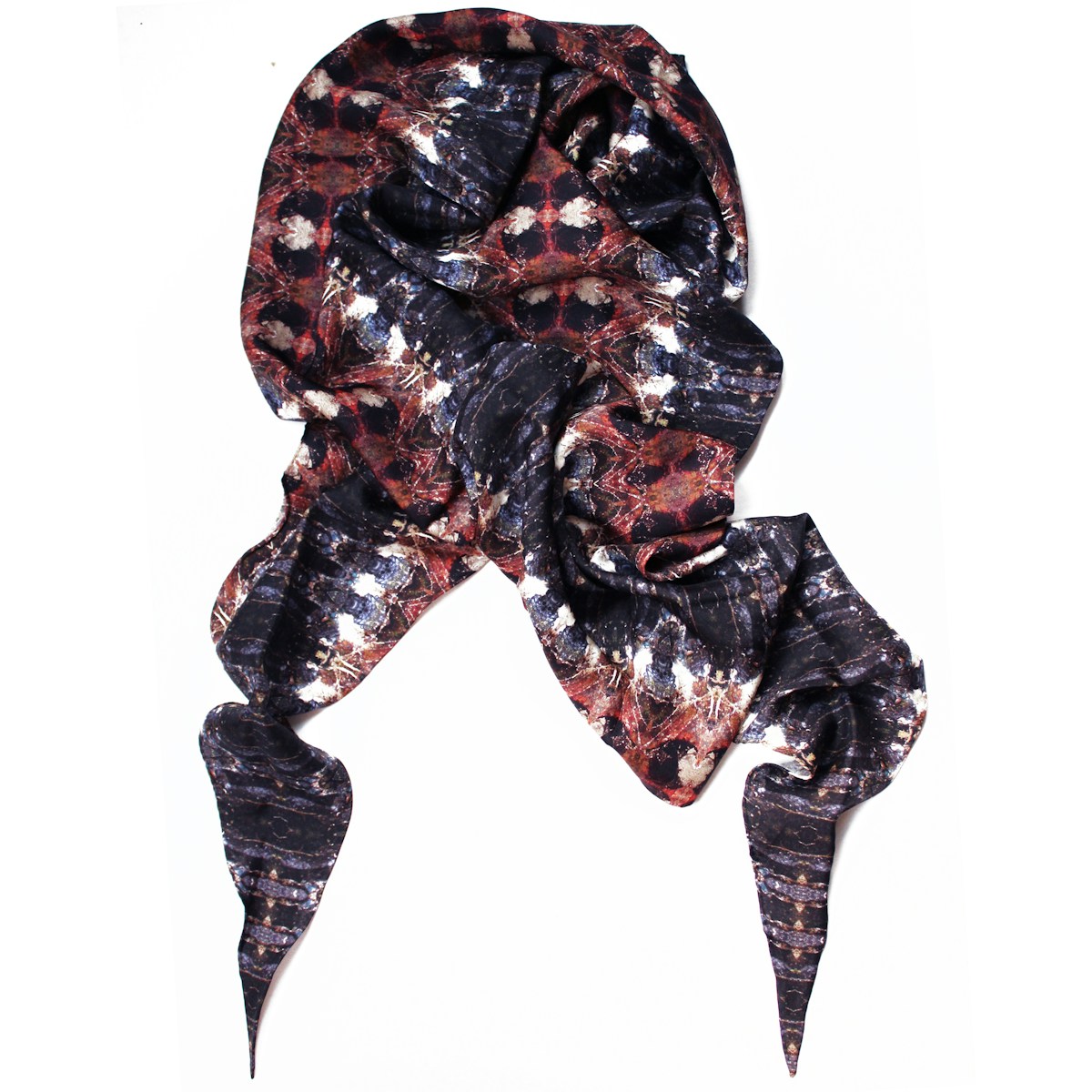 Elongated Diamond Shaped Scarf in Silk Twill with Hand-Rolled Edges (100% Silk)