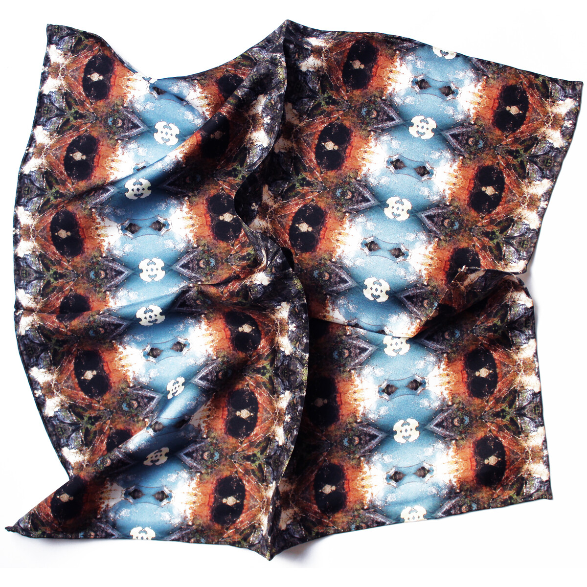 Worn as a neck tie scarf, pocket square and elegant accessory.