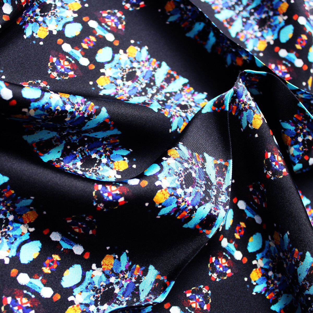 Wear as a neck tie, pocket square or silken accessory.