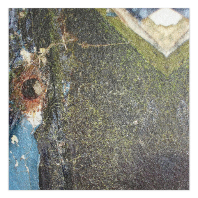 Painterly textural relief evoking early spring light upon a carpet of frost. Snowdrops and bluebells peeking through.