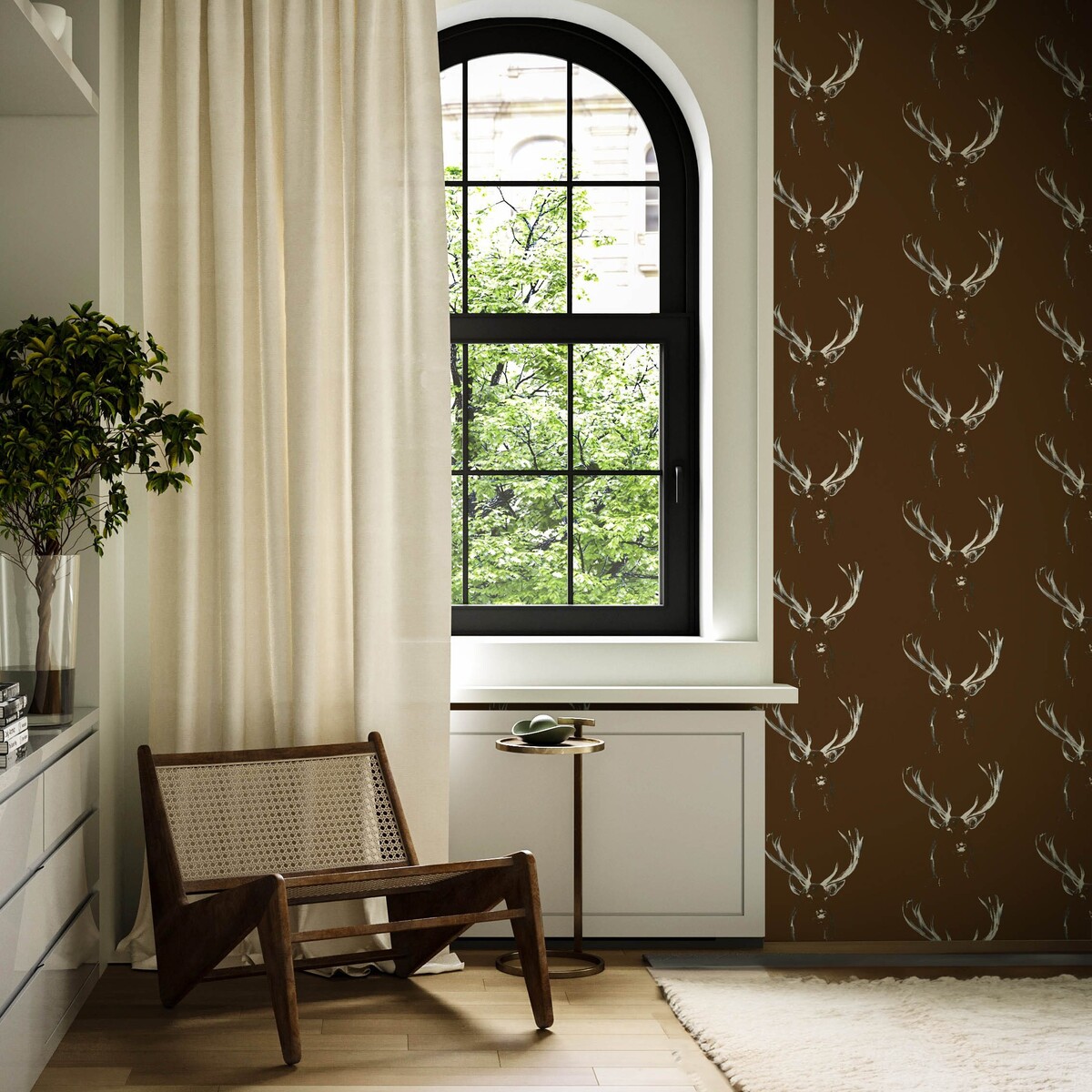 Originating from Iona's painting of a lone stag. Finn exists as the patriarch to our collections ~ cool and majestic in his demeanour. Each line whispers tales of wilderness and grace, a canvas capturing the mystery of the forest.