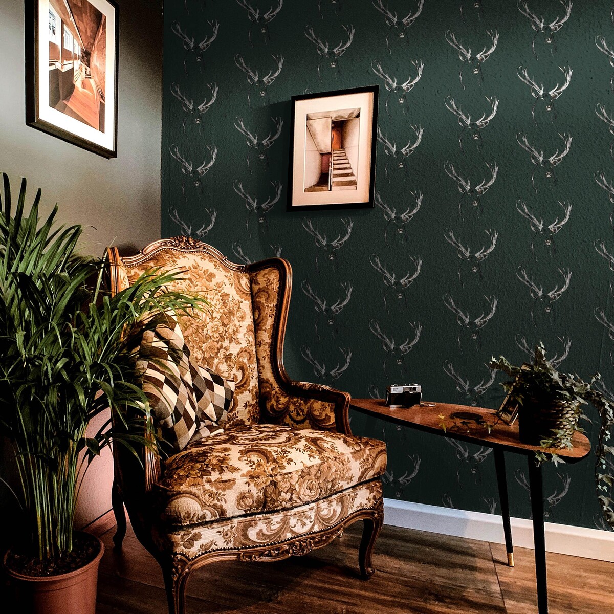 Originating from Iona's painting of a lone stag. Finn exists as the patriarch to our collections ~ cool and majestic in his demeanour. Each line whispers tales of wilderness and grace, a canvas capturing the mystery of the forest.