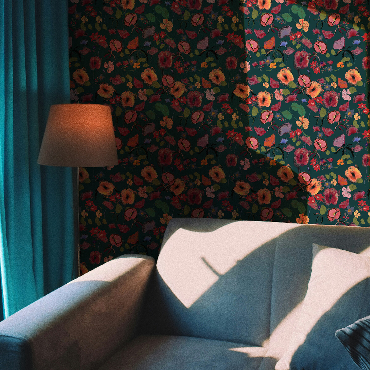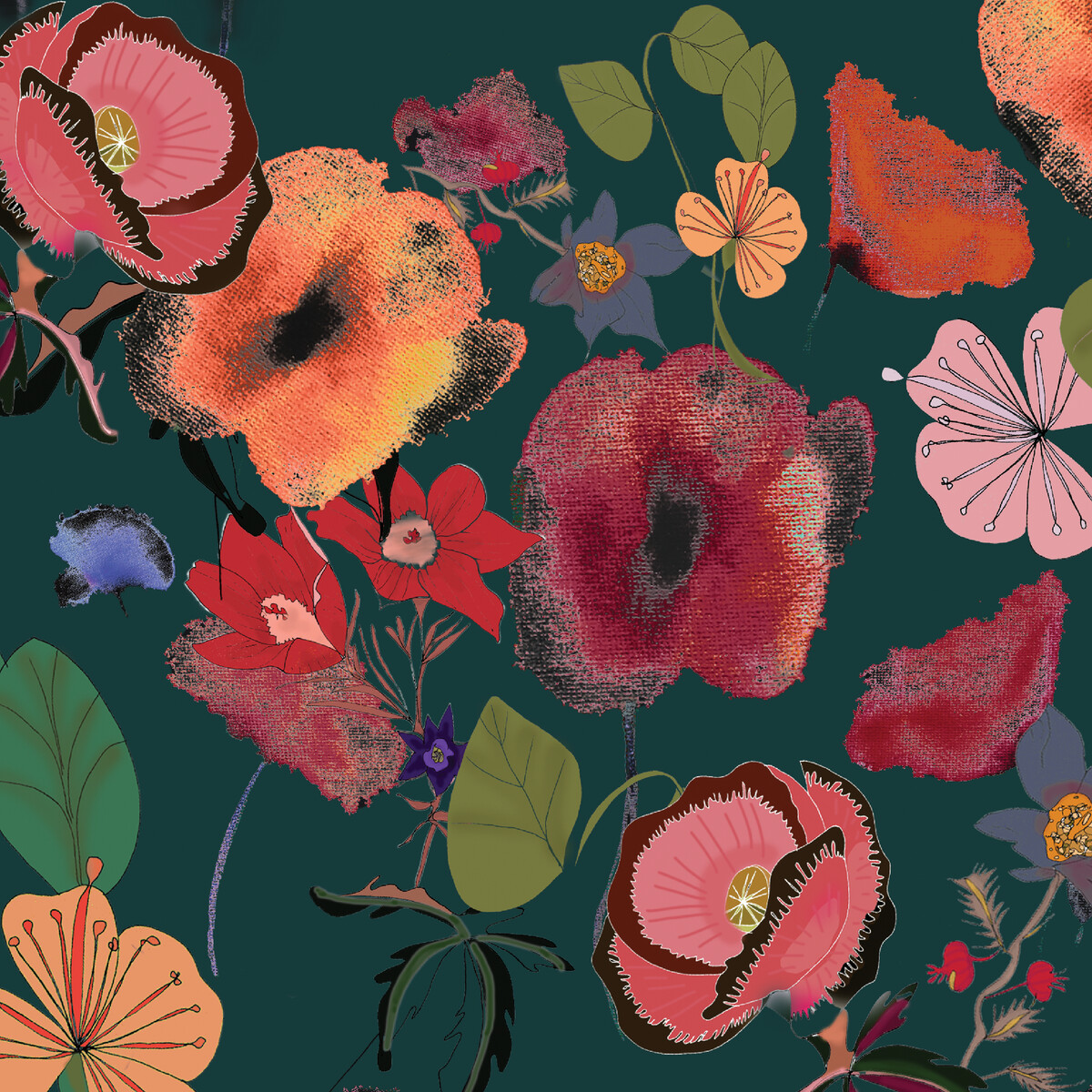 Symphony - Pen and ink drawing composed in harmony with our signature watercolour aesthetic to create a contemporary take on Arts and Crafts. Sinuous and organic botanicals illustrated in a musical palette, each evoking a different cadence through their delicate composition.