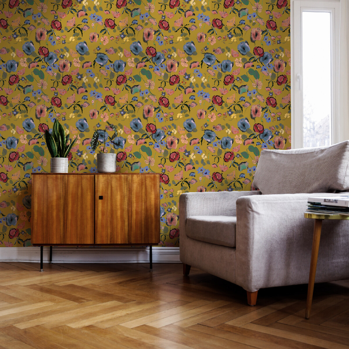 Symphony - Pen and ink drawing composed in harmony with our signature watercolour aesthetic to create a contemporary take on Arts and Crafts. Sinuous and organic botanicals illustrated in a musical palette, each evoking a different cadence through their delicate composition.