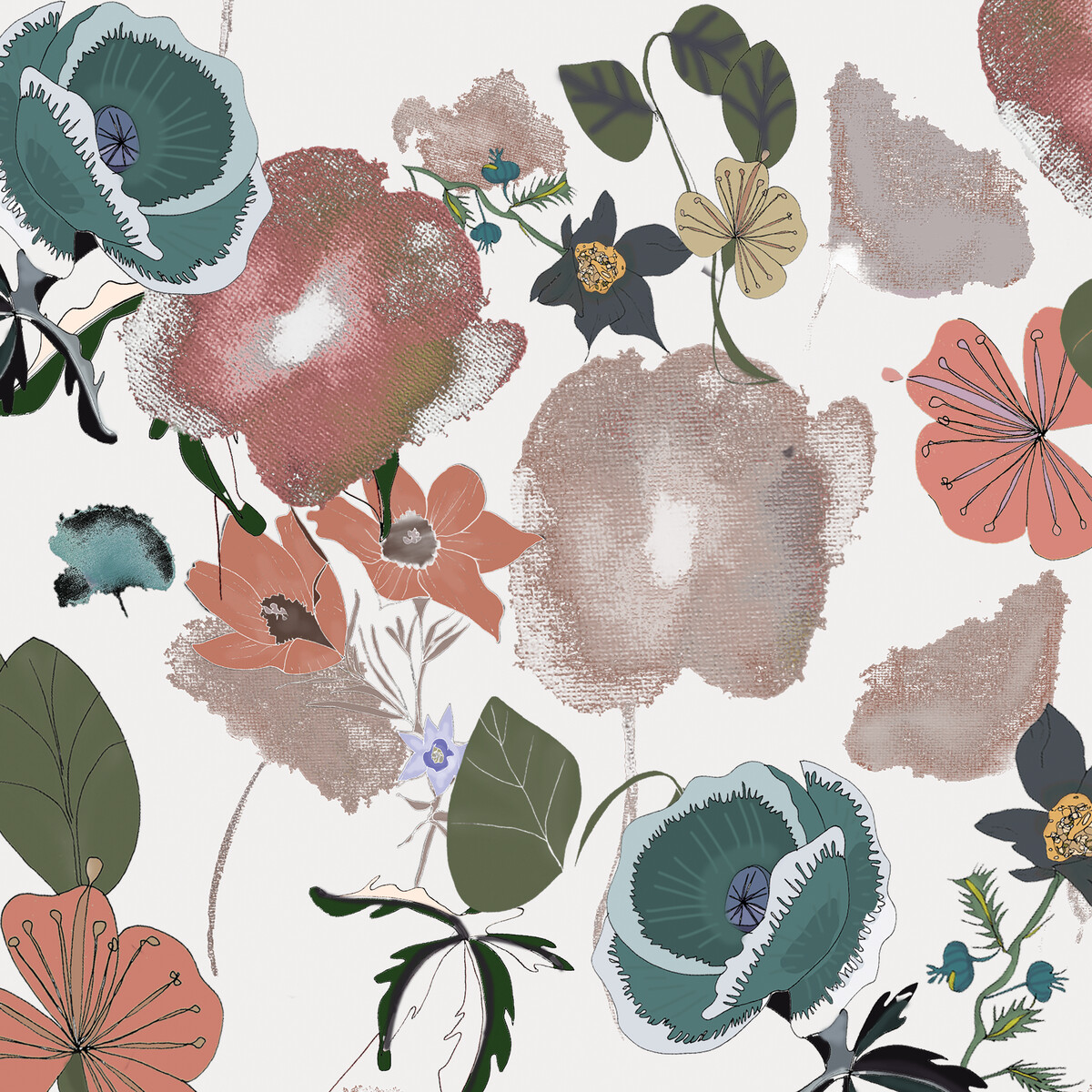 Symphony - Pen and ink drawing composed in harmony with our signature watercolour aesthetic to create a contemporary take on Arts and Crafts. Sinuous and organic botanicals illustrated in a musical palette, each evoking a different cadence through their delicate composition.