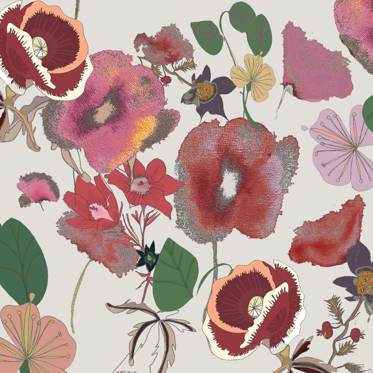 Symphony - Pen and ink drawing composed in harmony with our signature watercolour aesthetic to create a contemporary take on Arts and Crafts. Sinuous and organic botanicals illustrated in a musical palette, each evoking a different cadence through their delicate composition.
