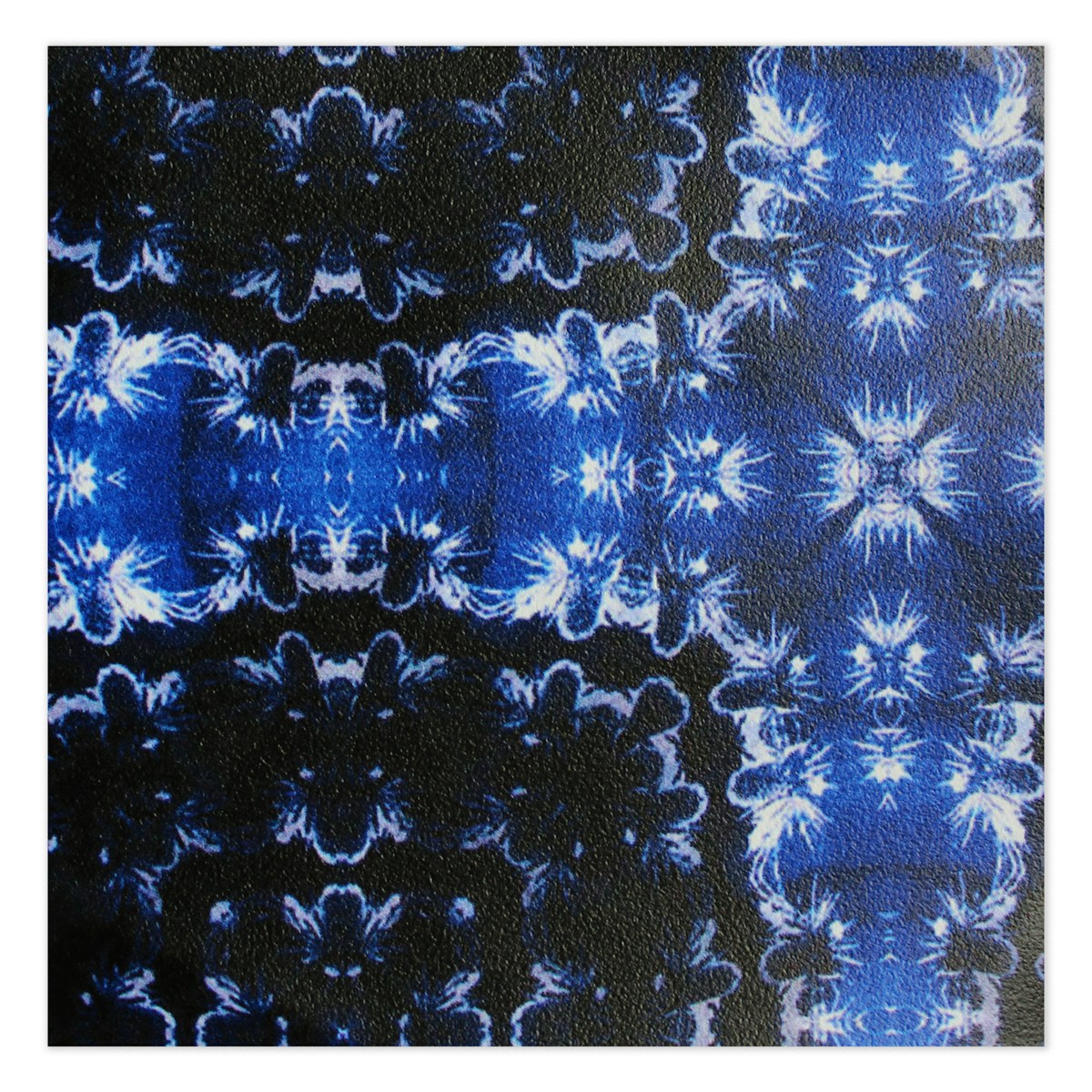 The dark, deep blue squares contrast with a bright blue background, creating a print that is sticking and one of-a-kind.