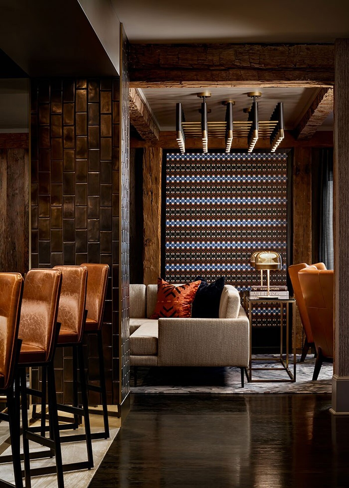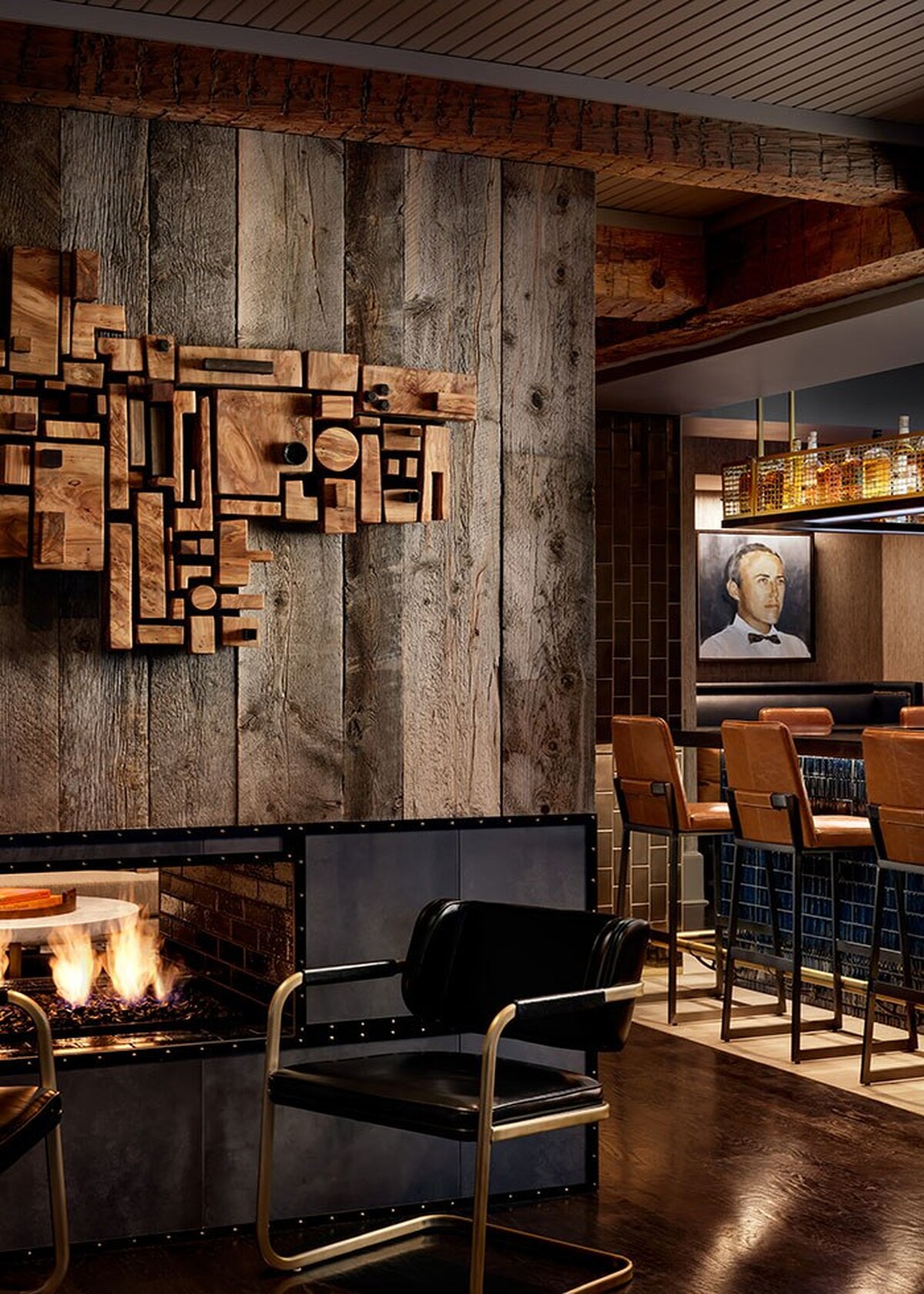 As the former home of one of Greenville's most prominent families, Hotel Hartness has incorporated the original architecture of the Hartness home into its design. Our Keyhole wallcovering takes spotlight upon a feature wall within The Captain Bar, a cosy ambiance with it's reclaimed barn, wood-clad décor.