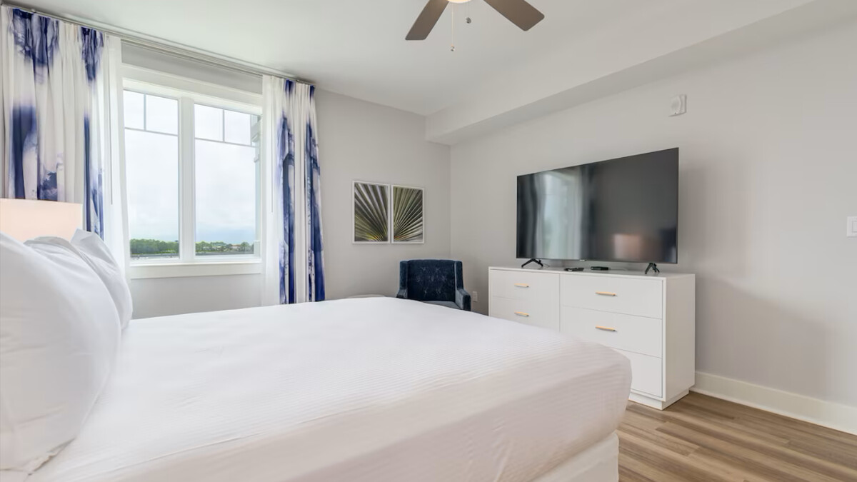 The room is bathed in natural light which pours in through an expansive bay window, casting a soft glow over the carefully curated furnishings. A symphony of textures; from plush velvets to sleek acrylic table lamps, standing as sculptural focal points.